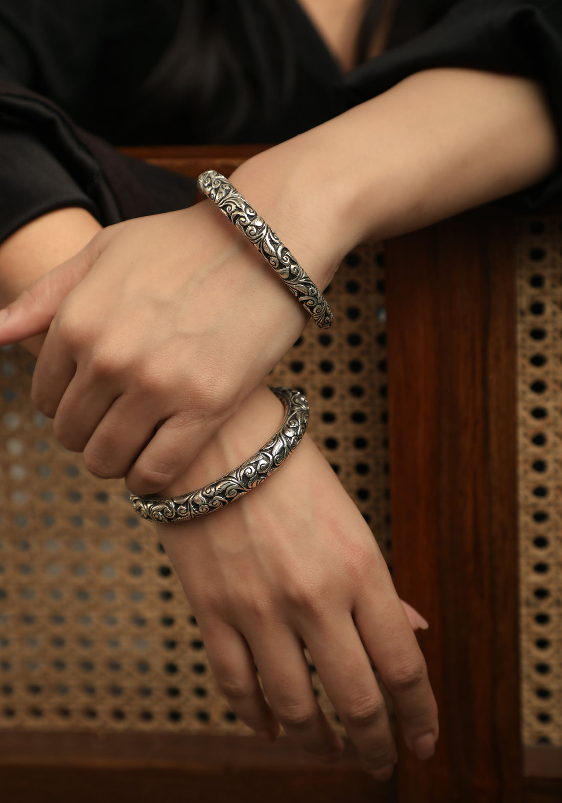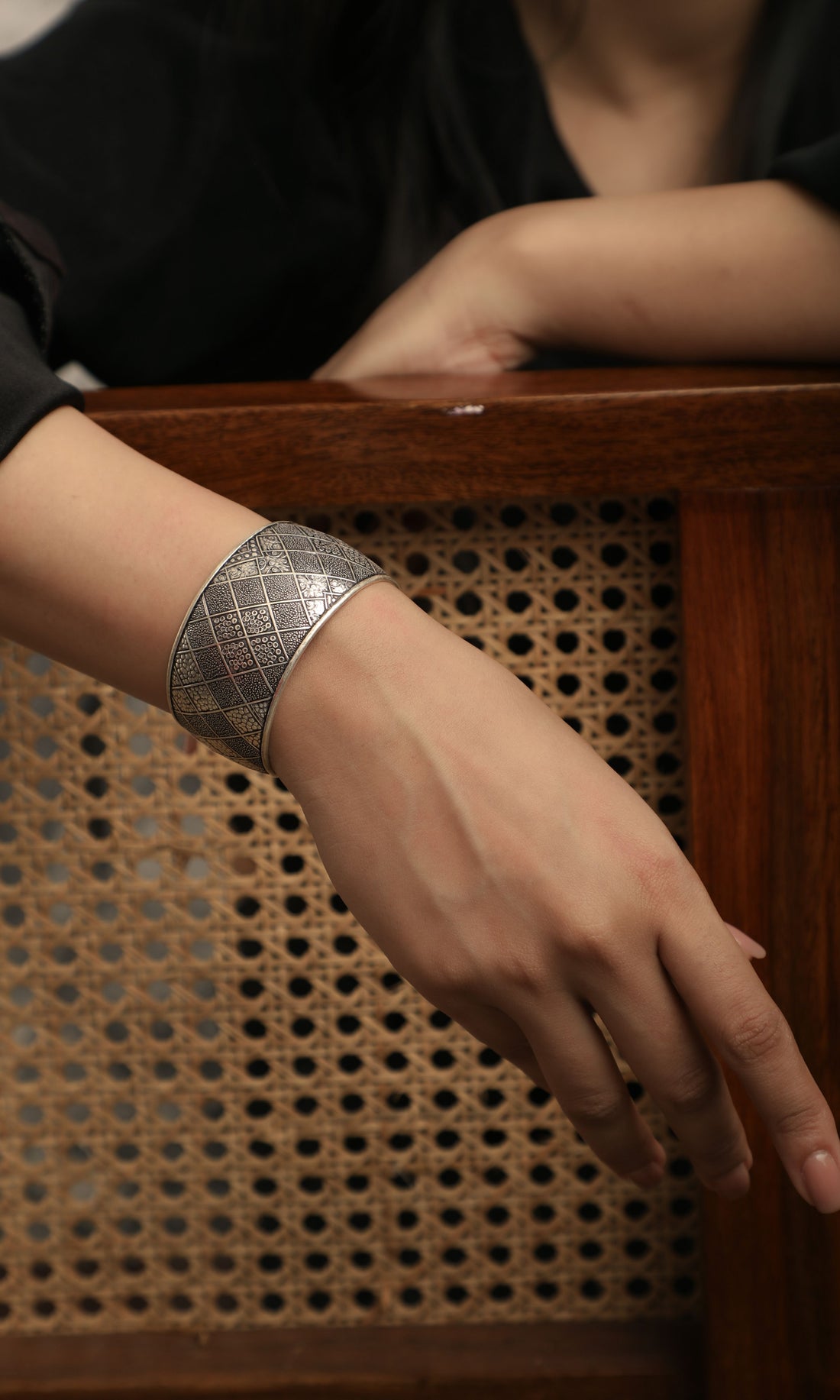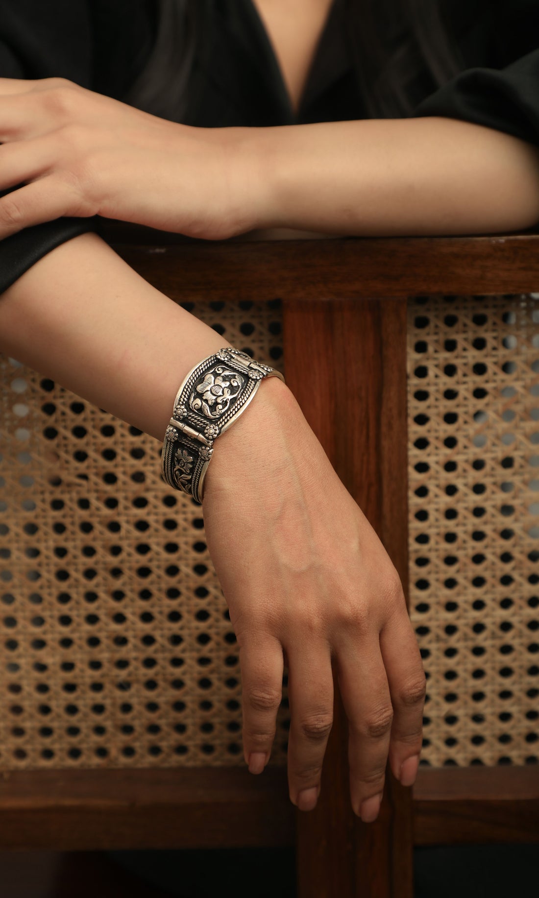 Traditional Floral Oxidized Cuff