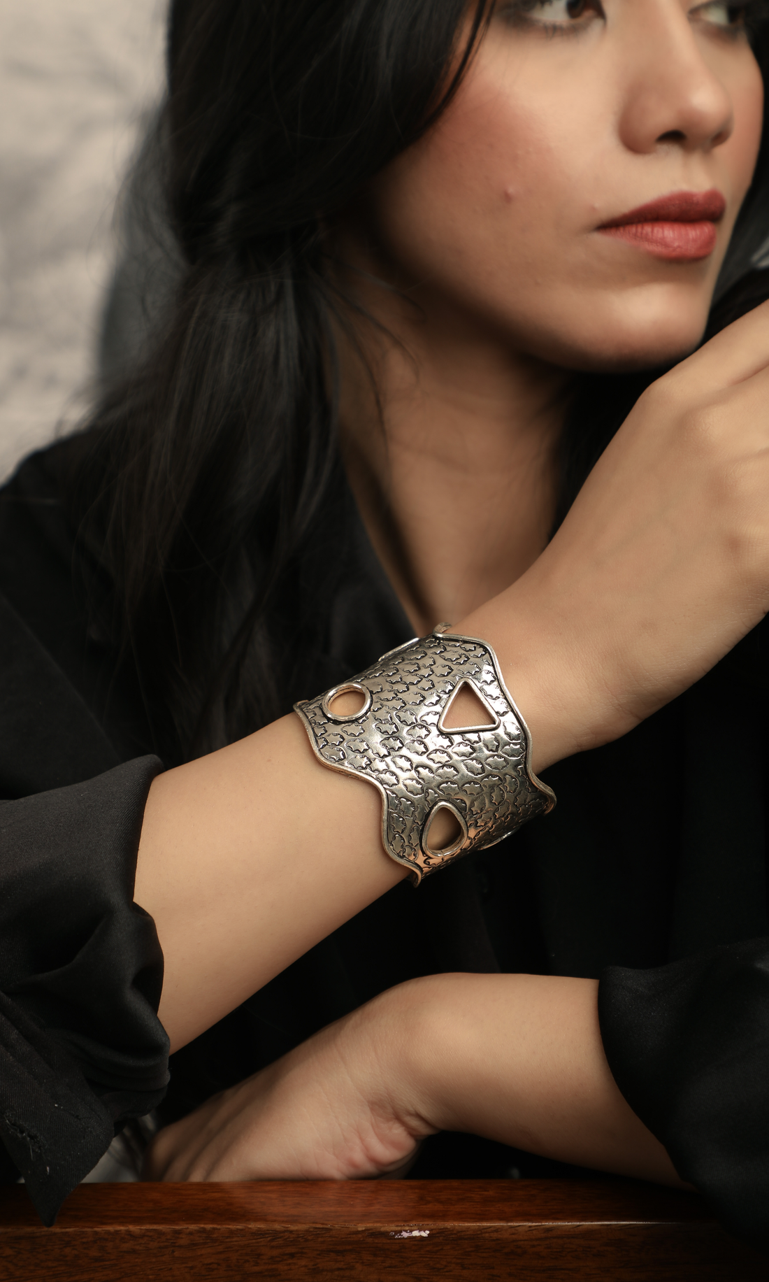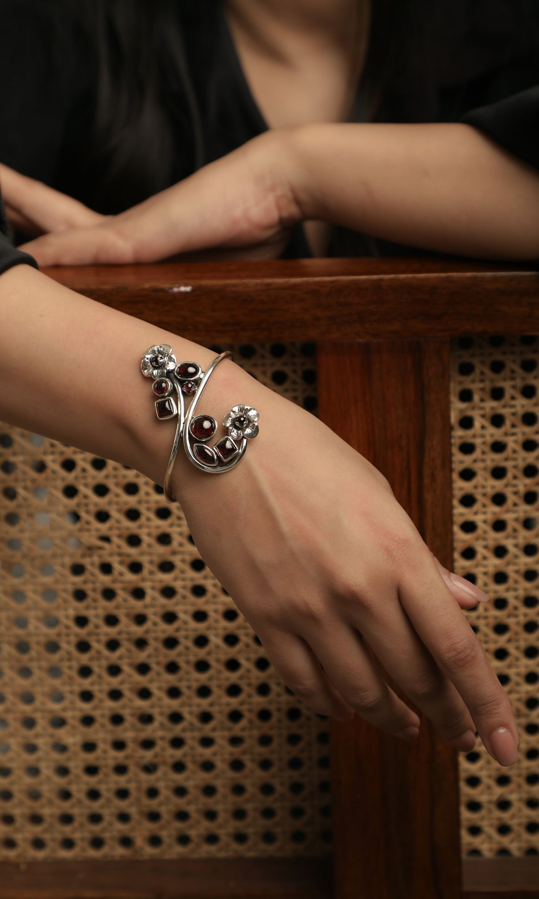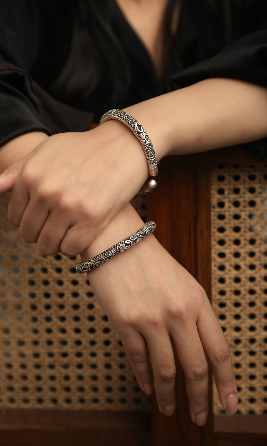 Traditional Floral Oxidized Cuff