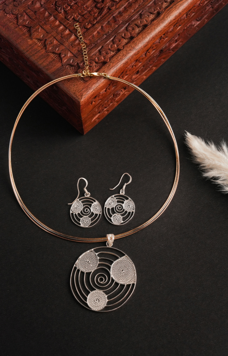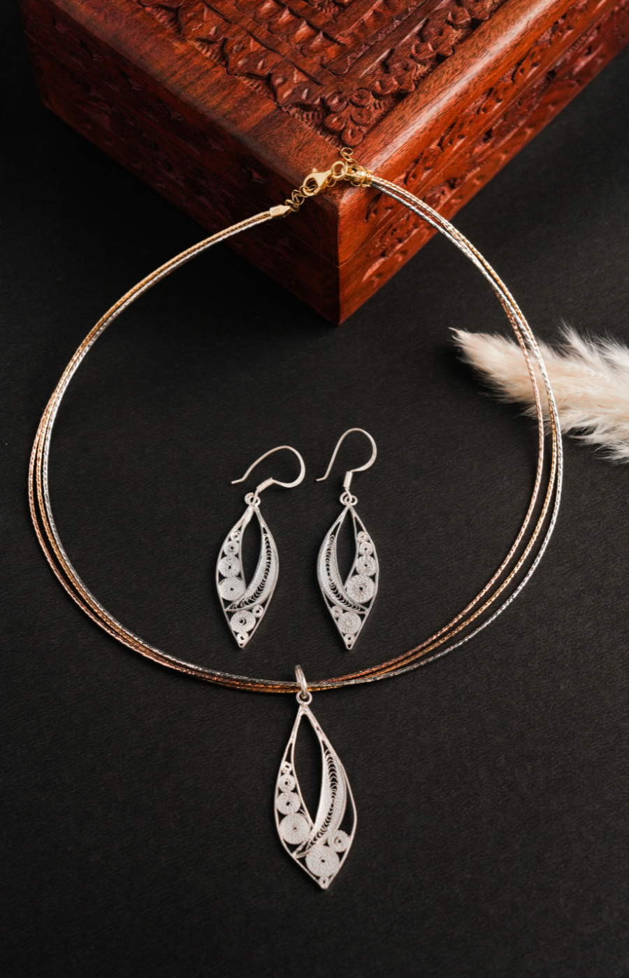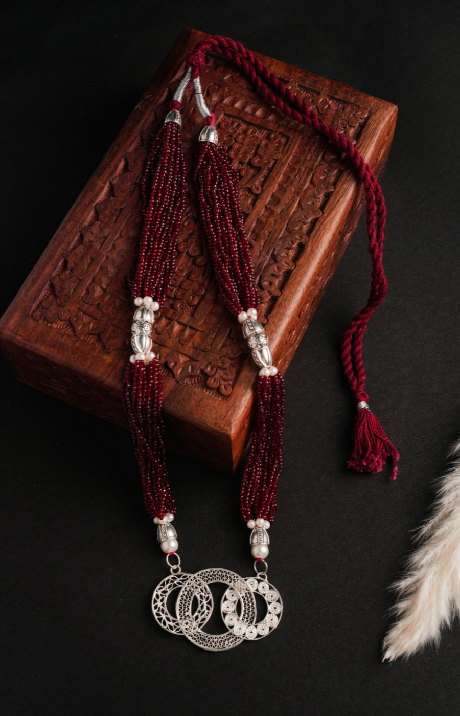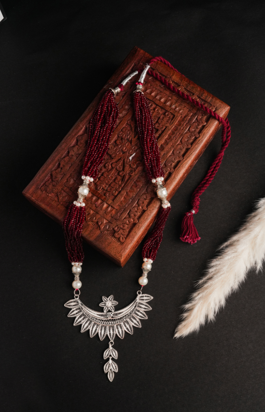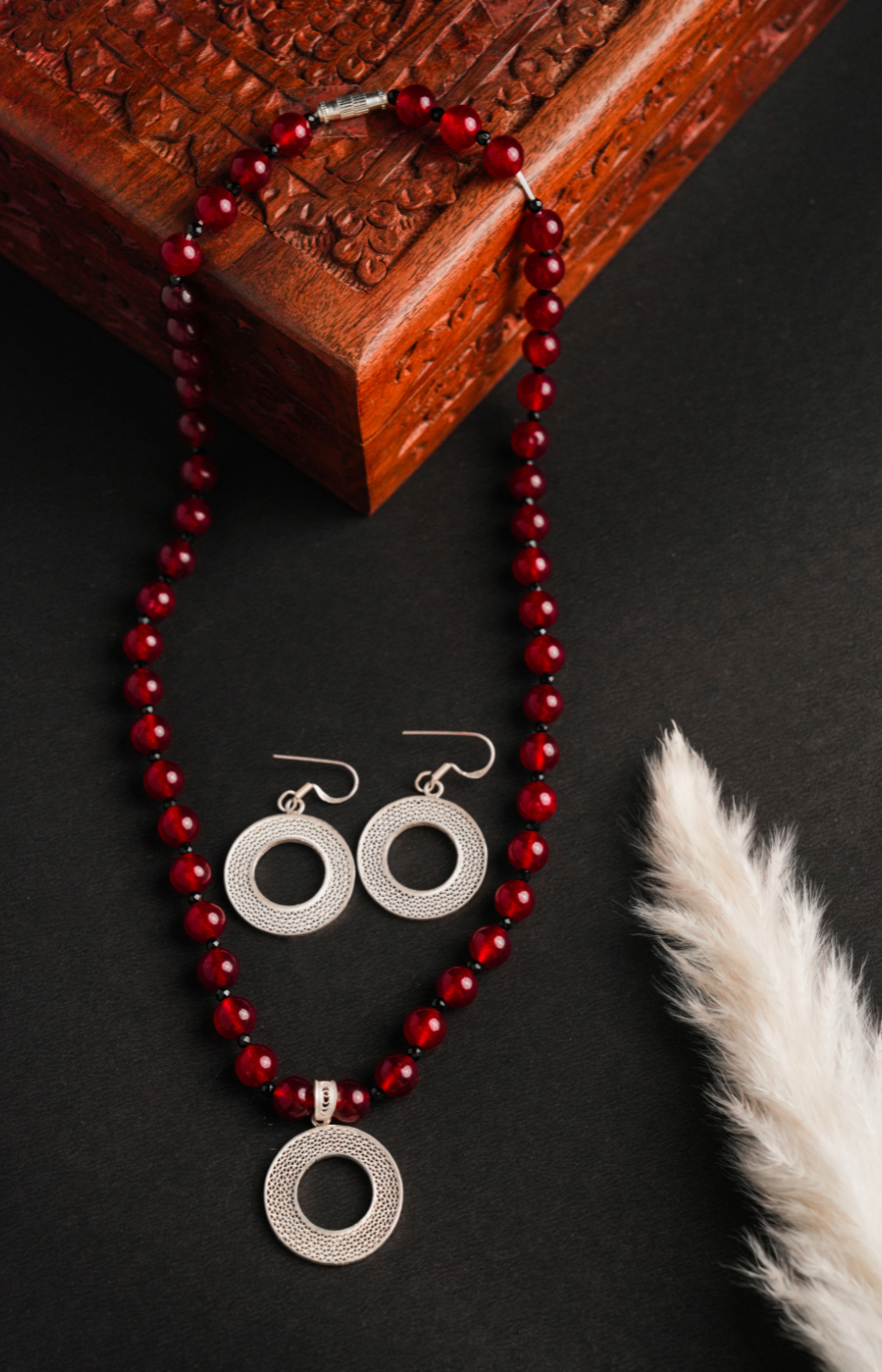 Woven Whispers Shaped Pendant with Red Pearls Set
