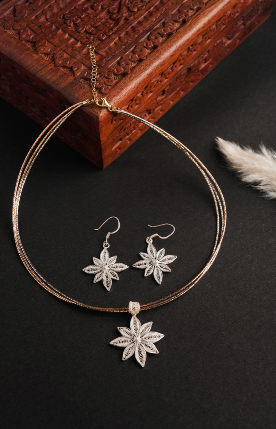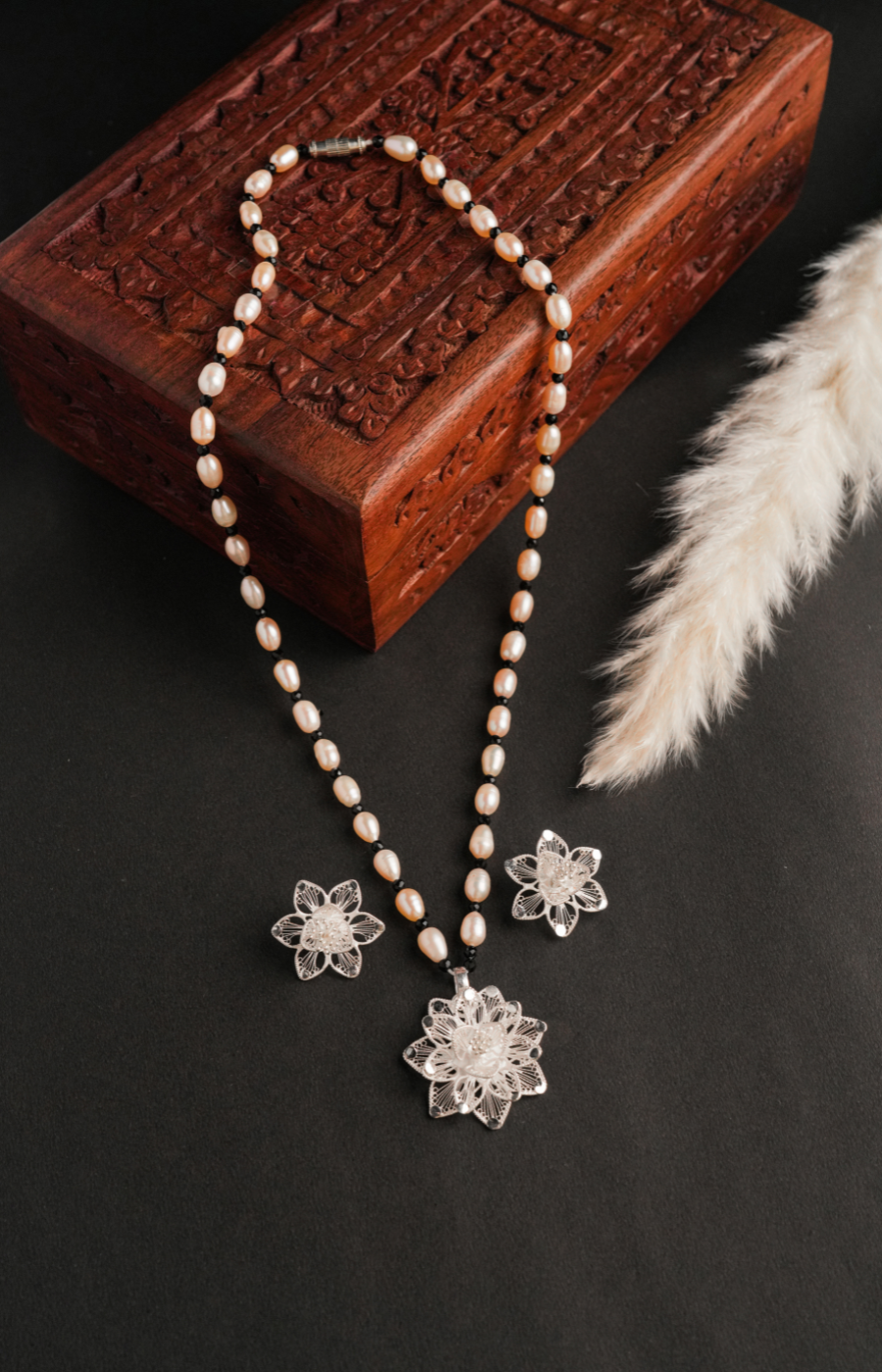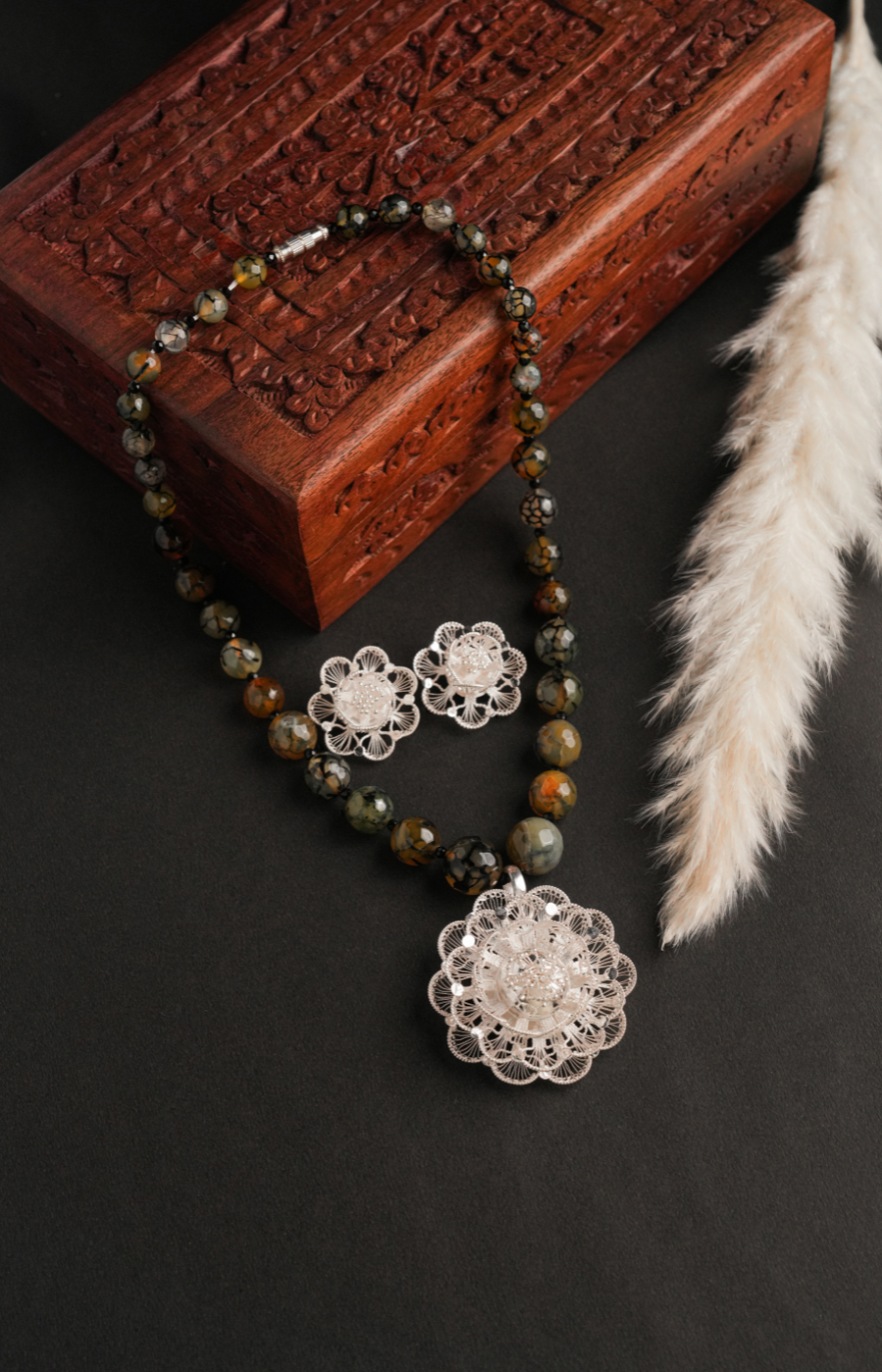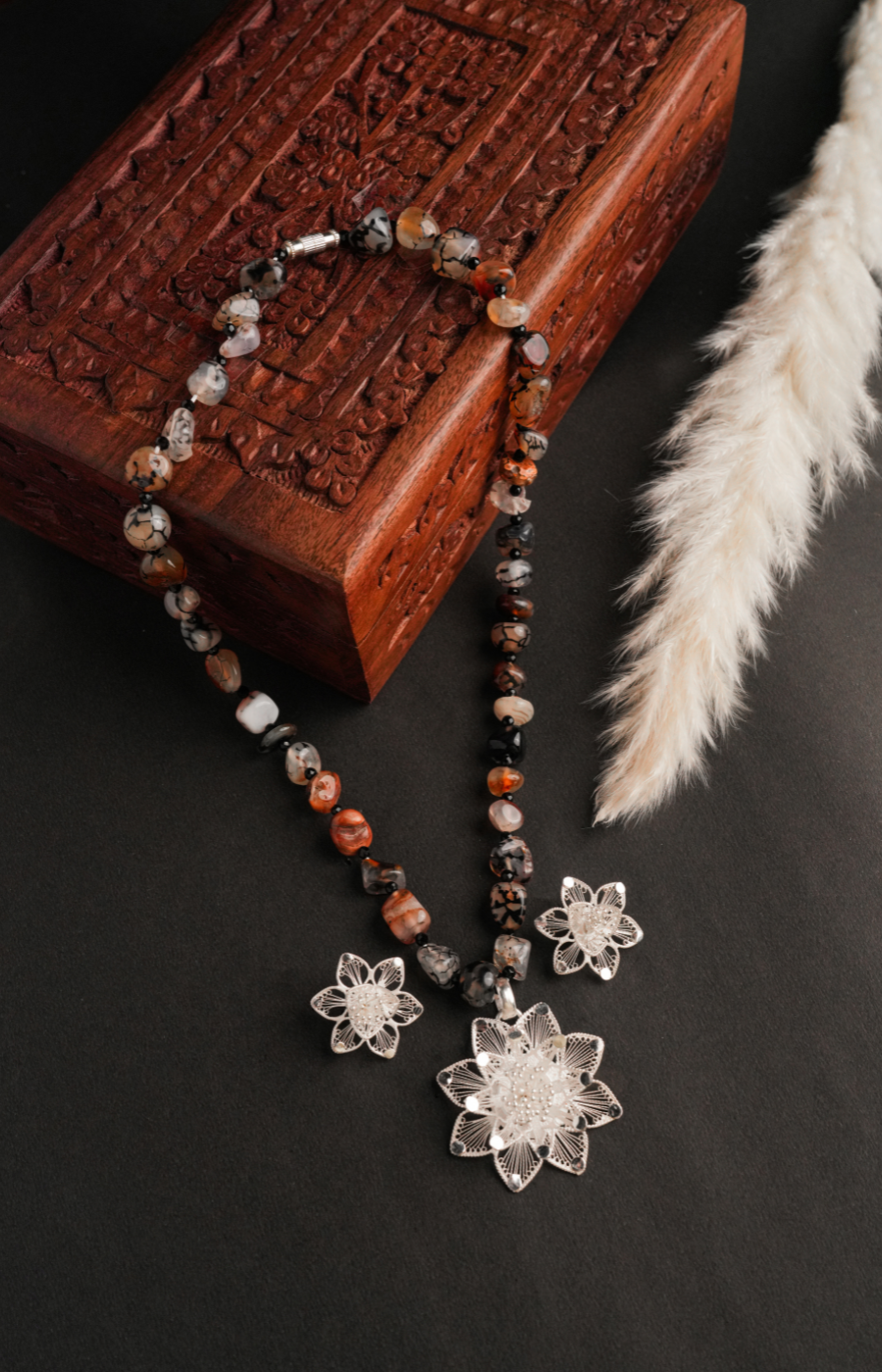 Flower Shaped Pendant Set with Brown Beads