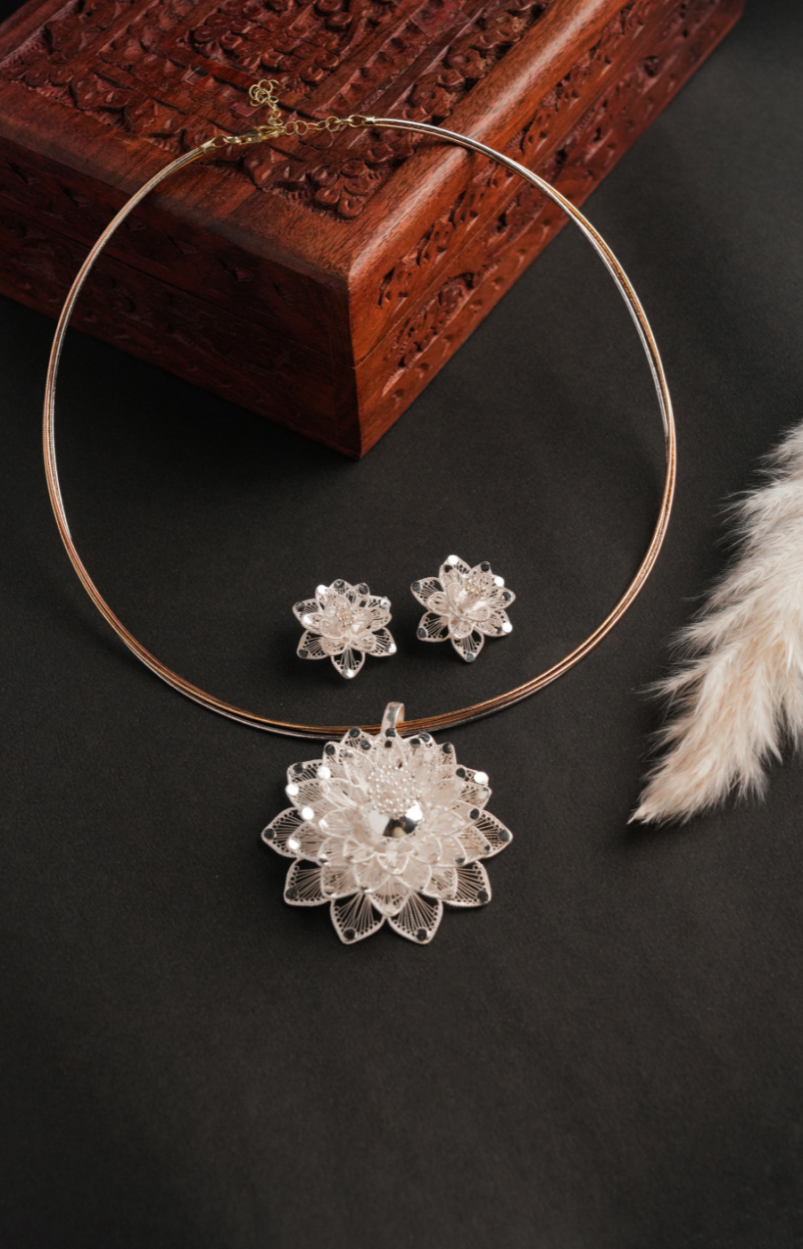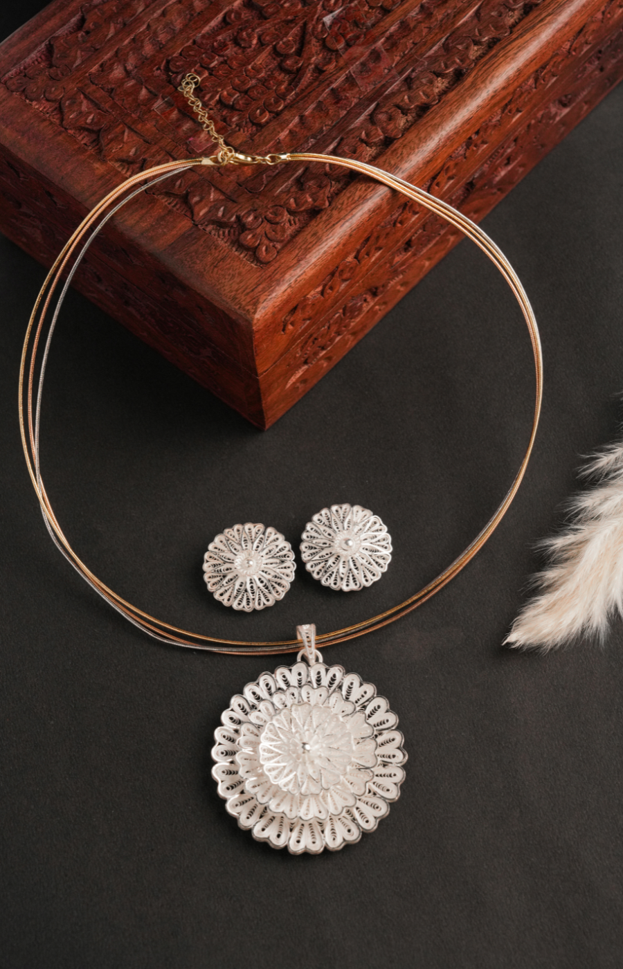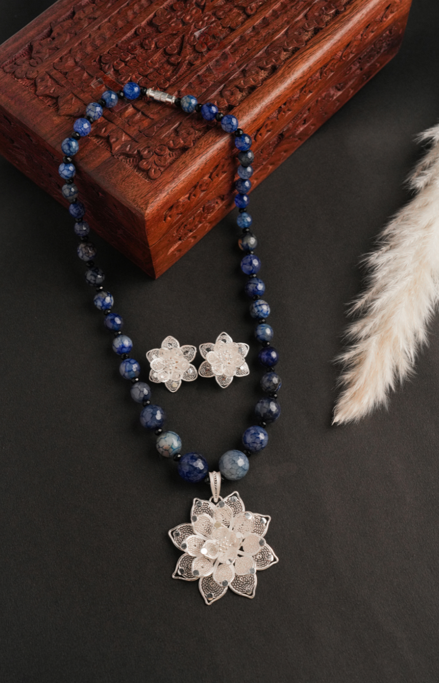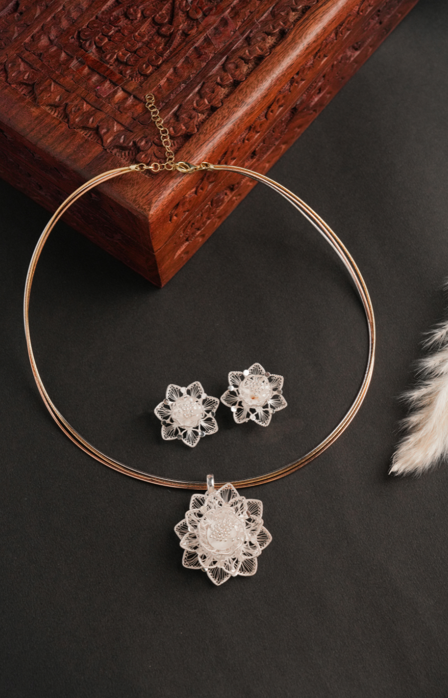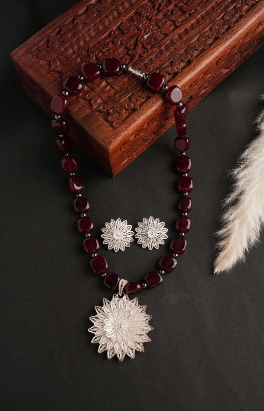 Flower Shaped Pendant Set with Brown Beads