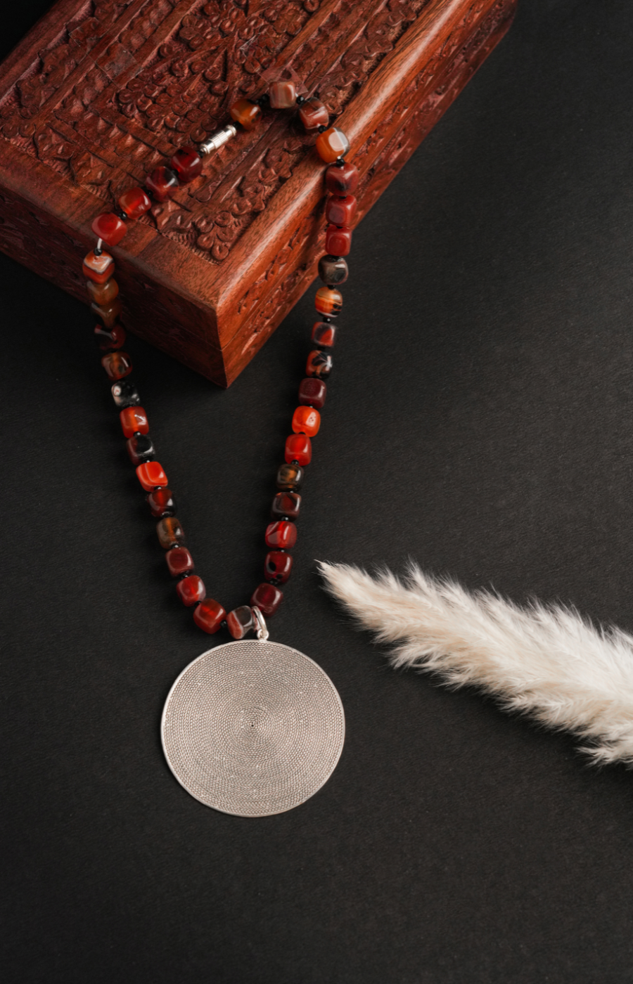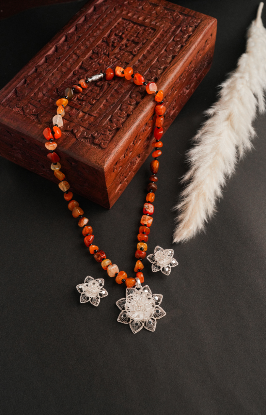Filigree Shaped Pendant Set with Orange Beads
