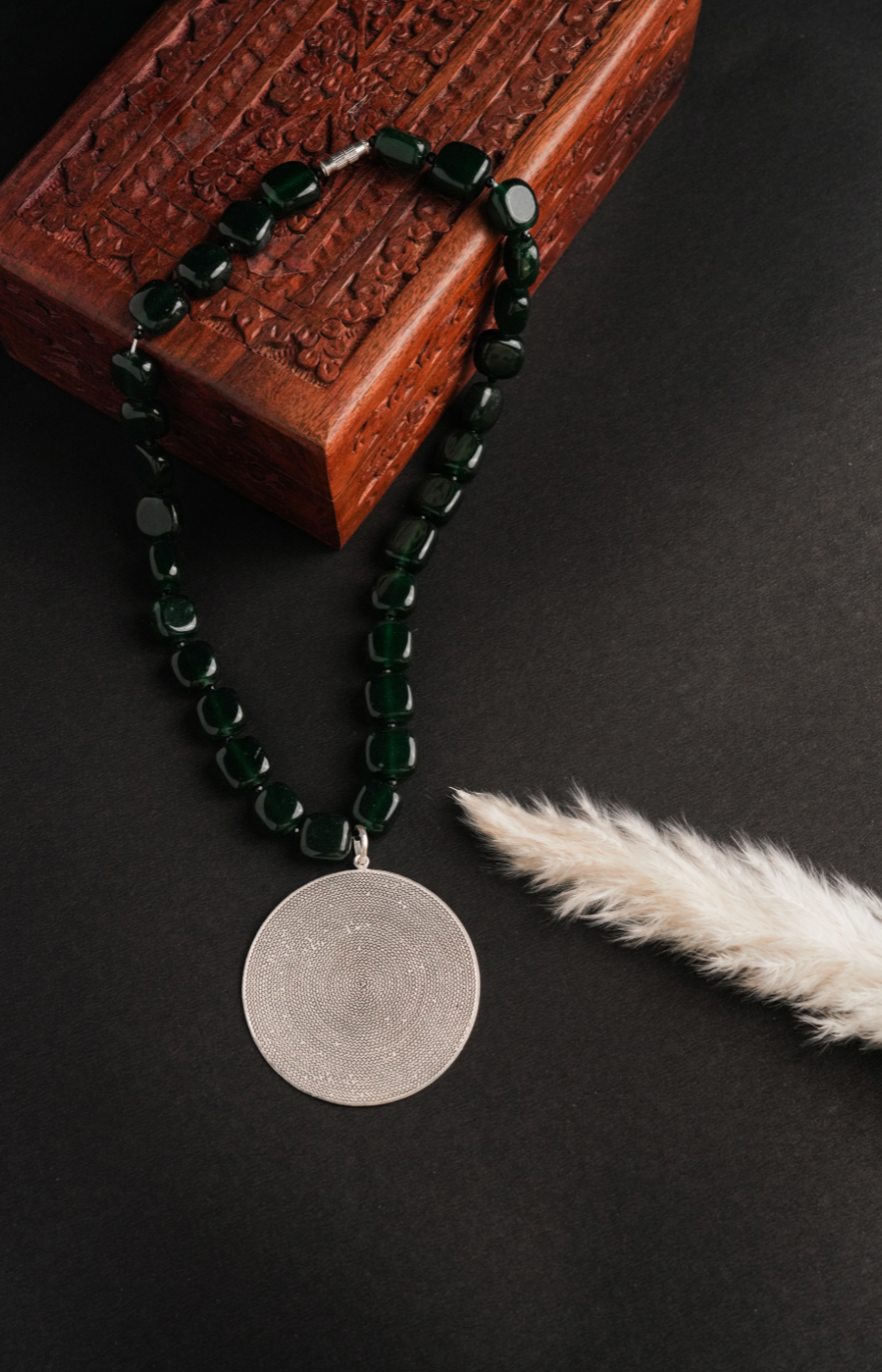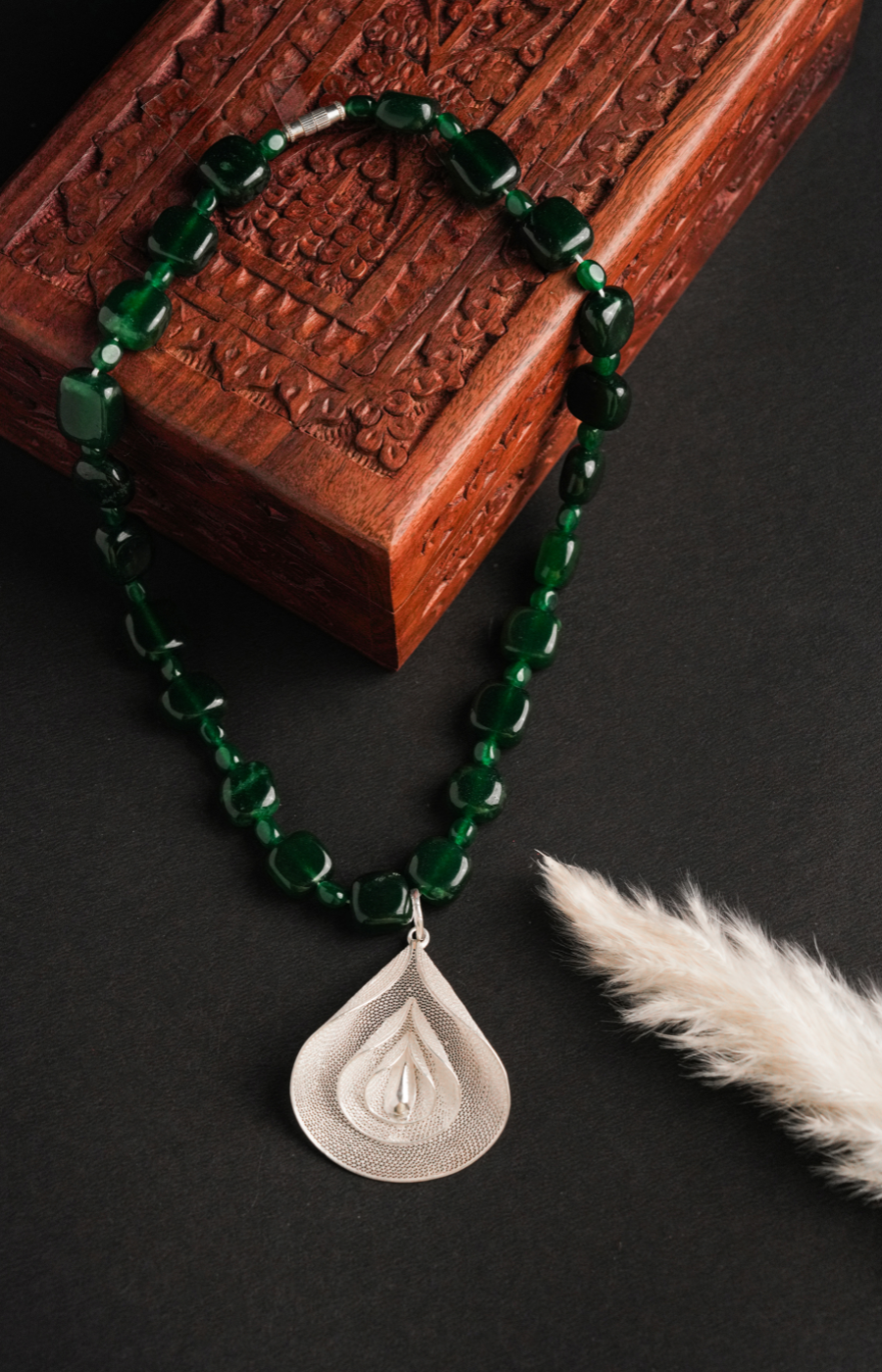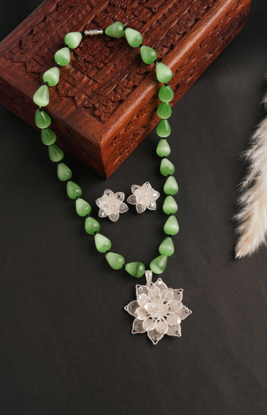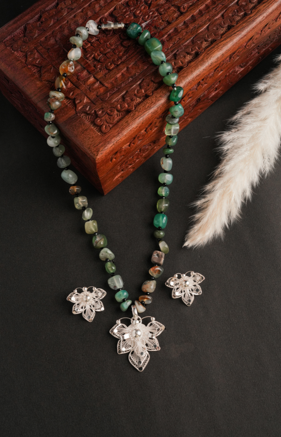 Bold Filigree Dark Green Beads Pendant Set