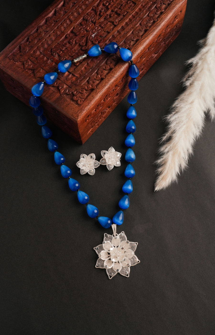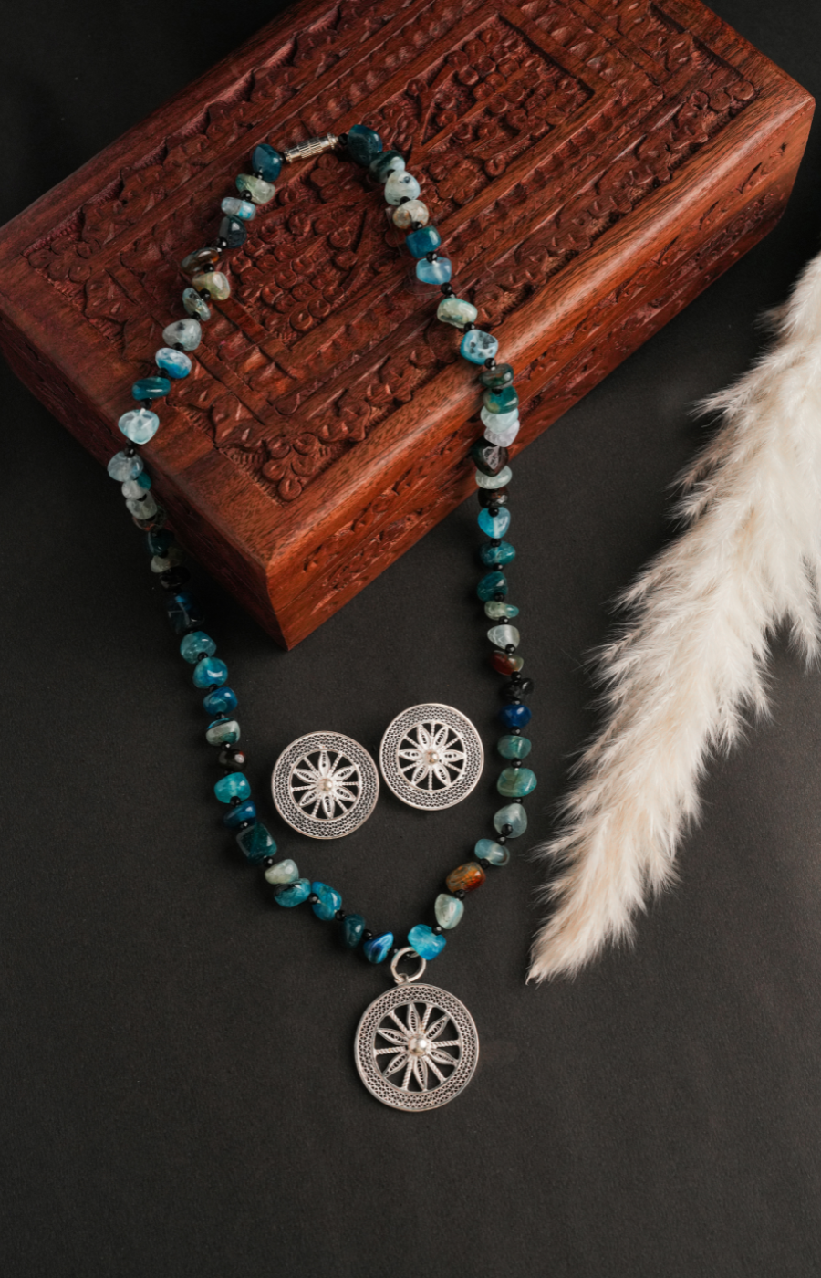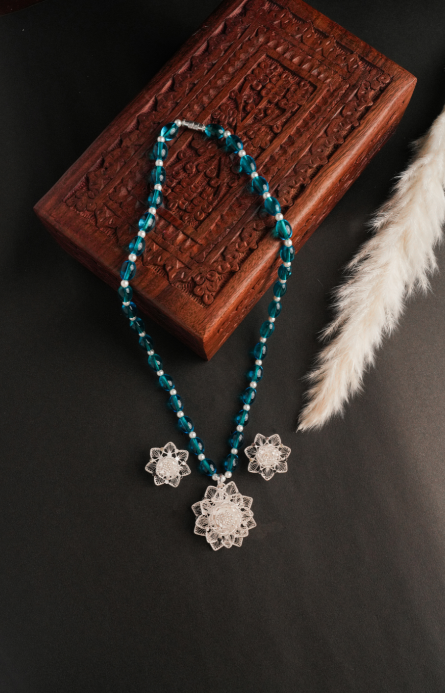 Filigree Pendant Set with sky-blue Beads and white pearl