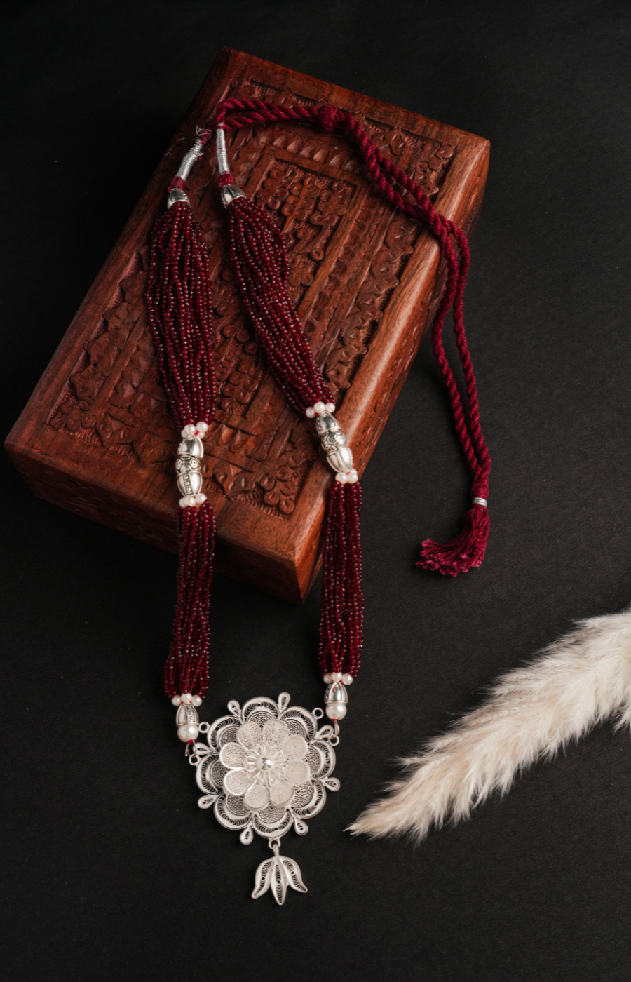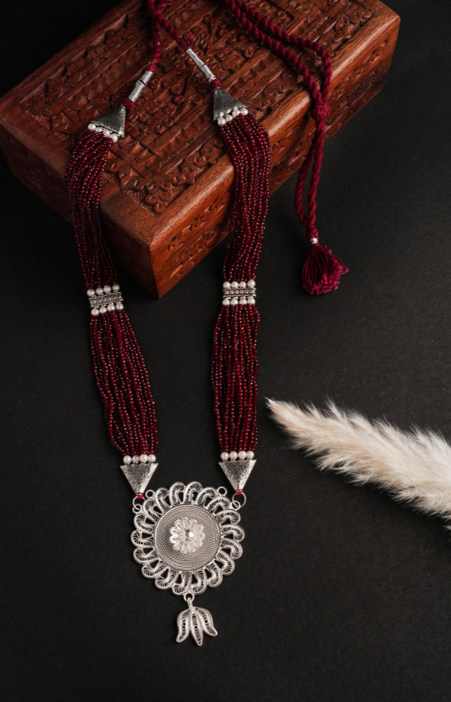AuraPetal Shaped Pendant with Red Pearls