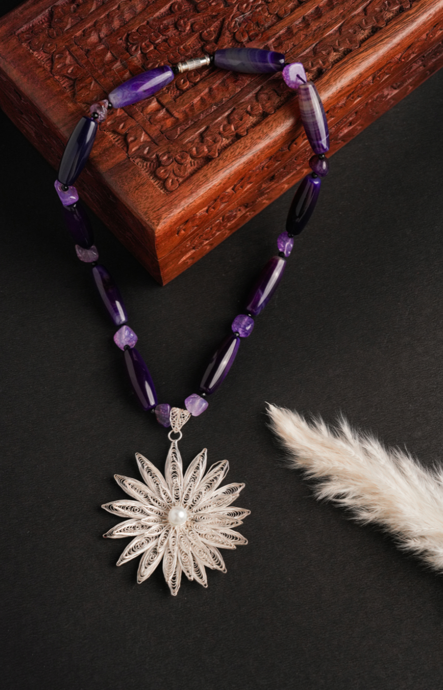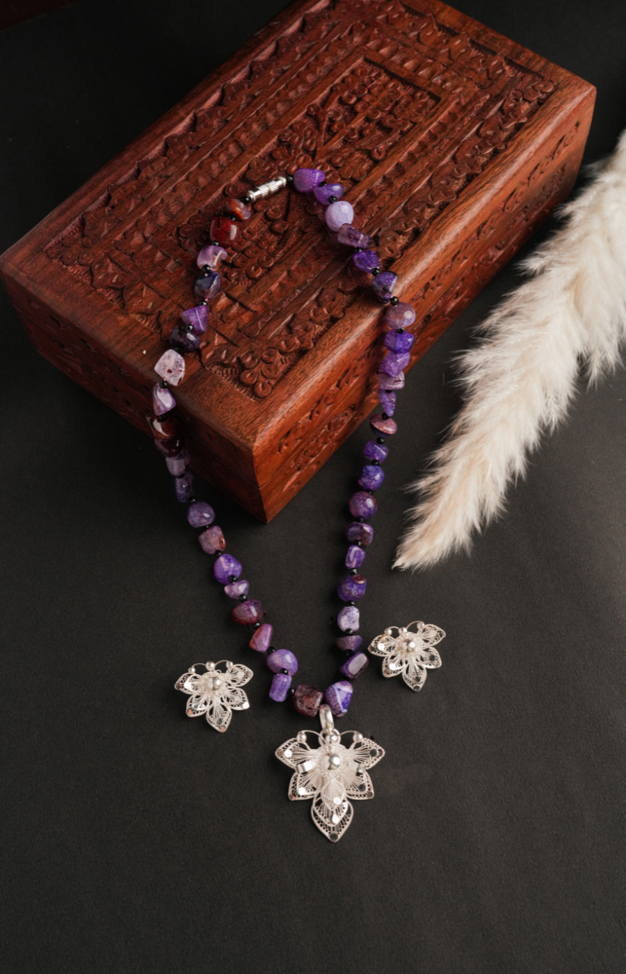 Leaf Shaped Pendant Set with Purple Beads