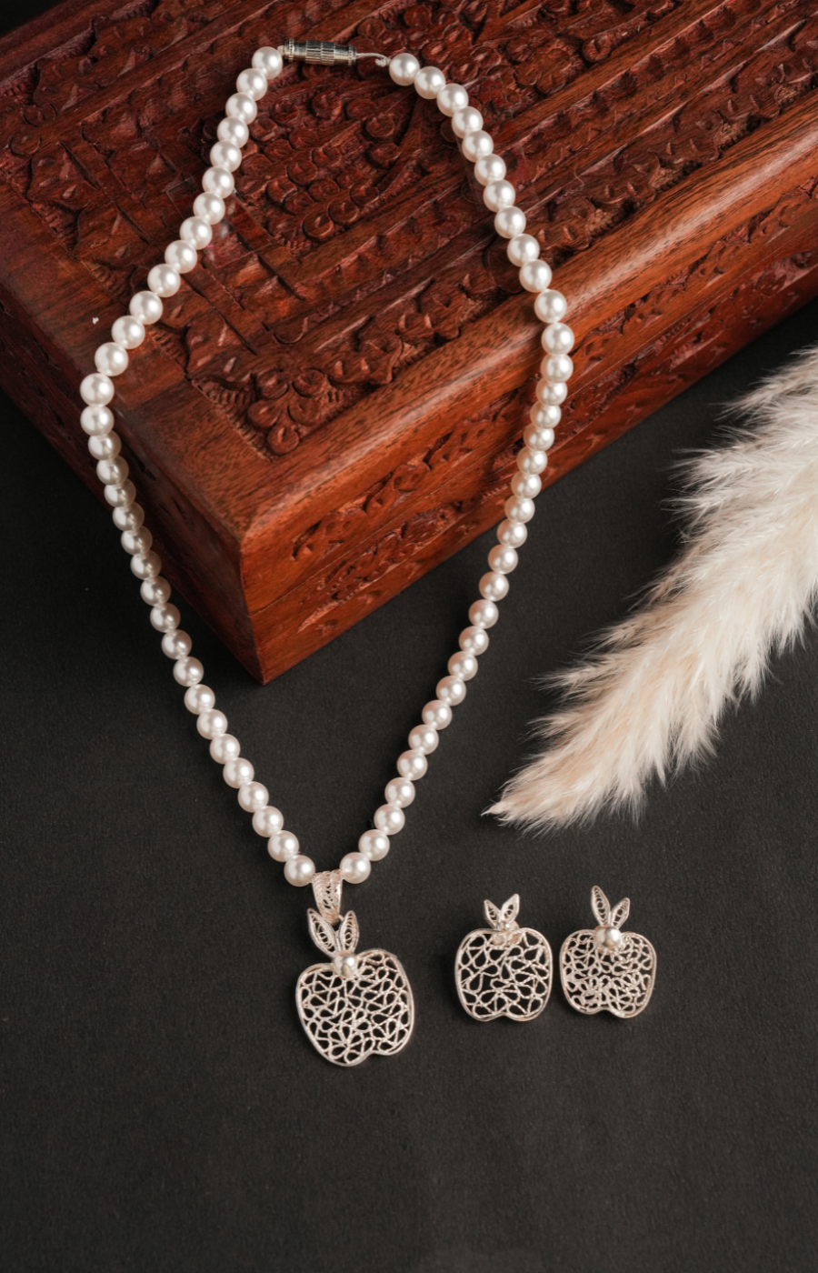 Apple Shaped Pendant Set with White Pearl