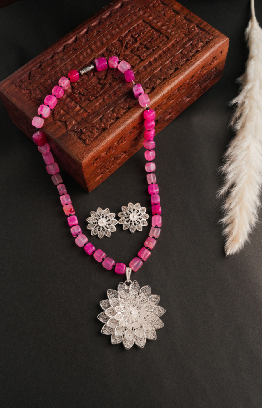Rose Floral Shaped Pendant Set with Brown Beads
