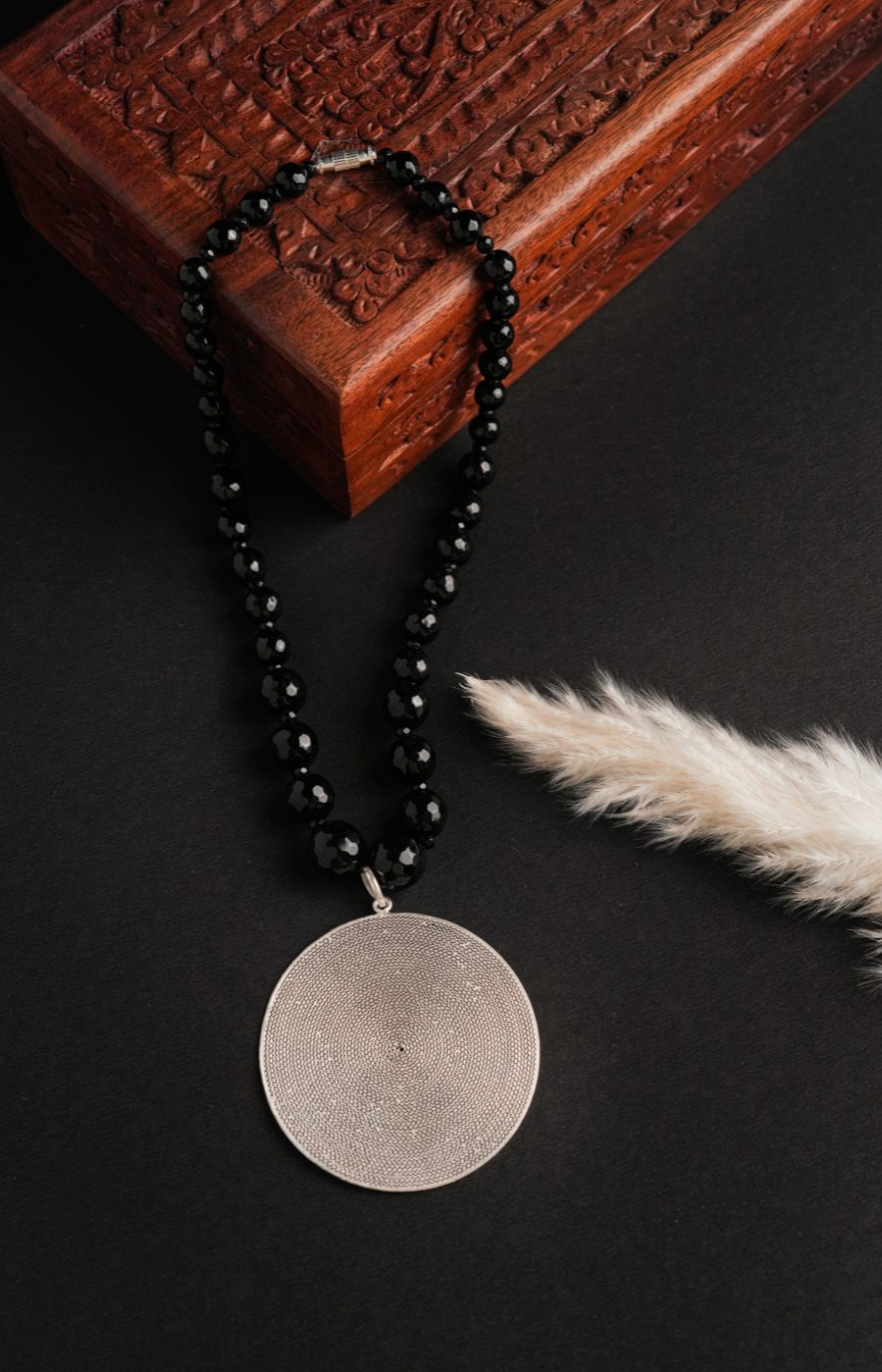Black Beads Moonlit Pendant Set