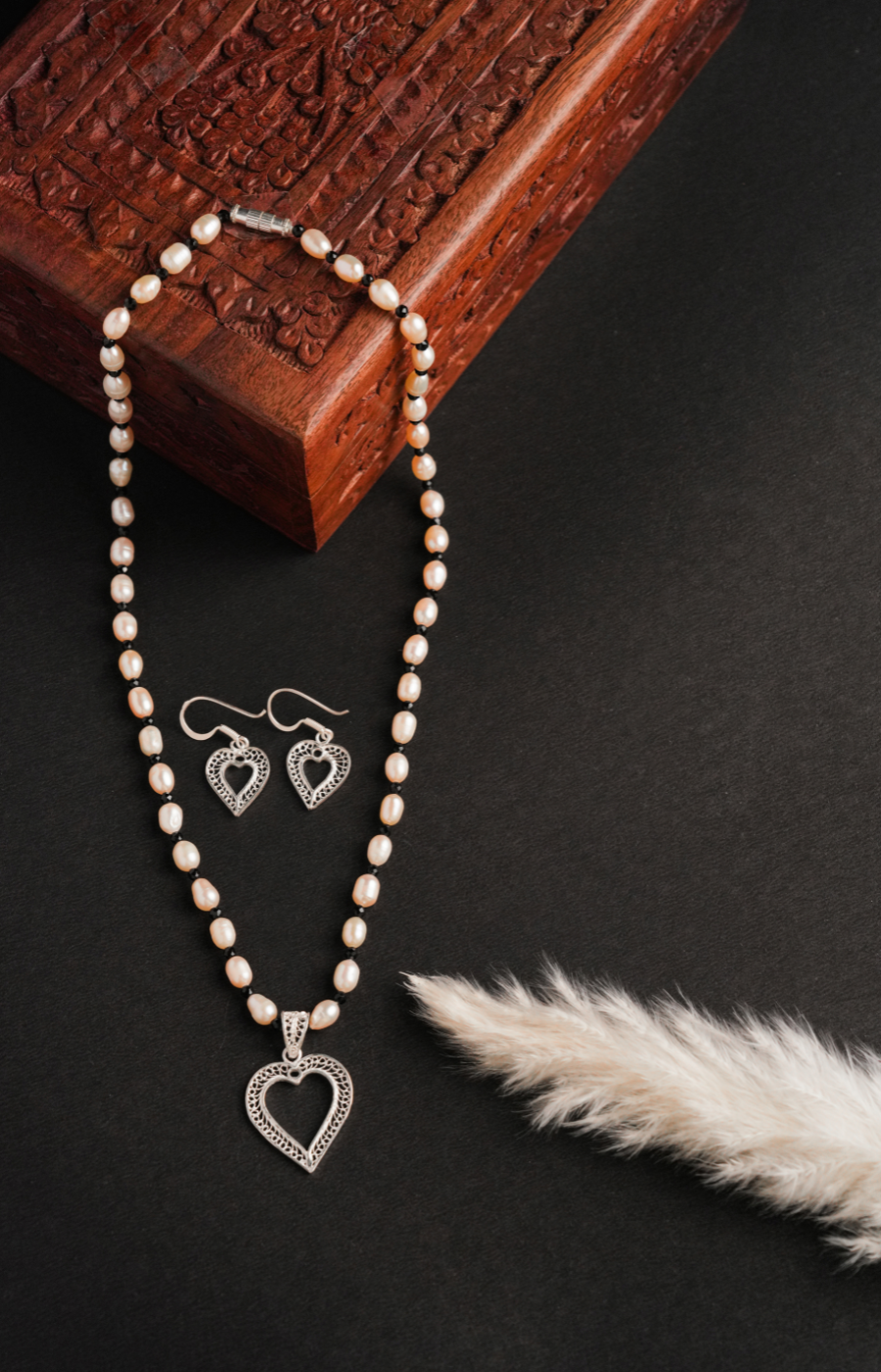 Heart Shaped Pendant Set with Cream Beads