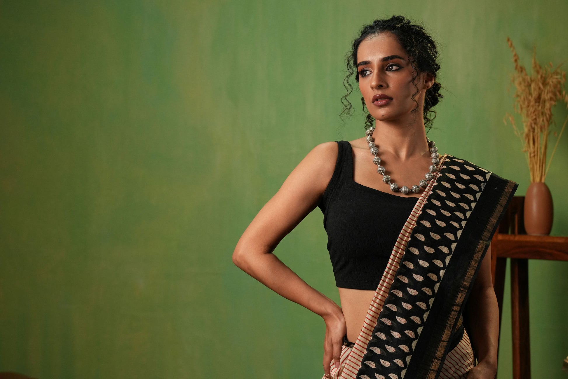 The Bold Beaded Oxidized Necklace is a powerful expression of traditional craftsmanship and ethnic statement design. Crafted in oxidized silver, this necklace features boldly shaped, intricately detailed beads that create a striking and commanding visual presence. Each bead reflects skilled handwork, adding depth and texture to the overall design.