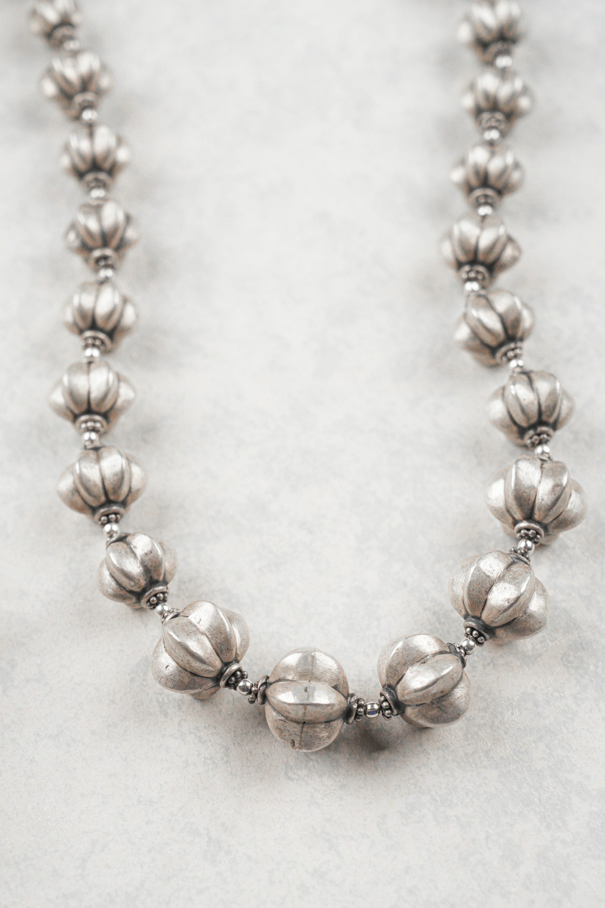 The Earthy Bead Oxidized Necklace is a bold yet understated expression of rustic charm and tribal-inspired craftsmanship. Designed with uniquely shaped oxidized silver statement beads, this necklace carries a raw, earthy character that highlights its handcrafted appeal.
