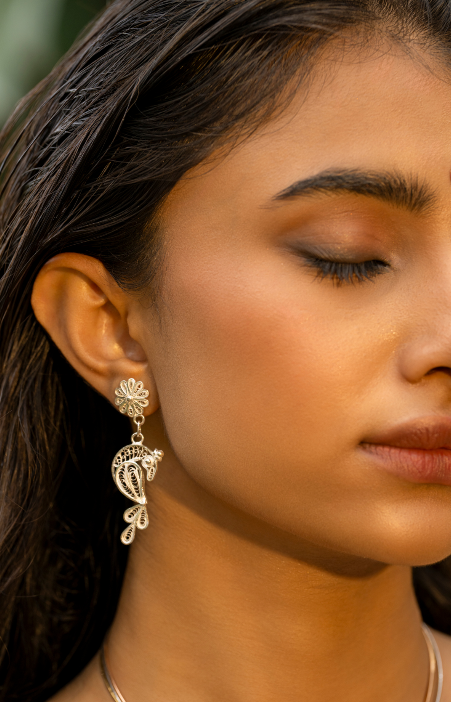 Store in a soft pouch or jewelry box to protect the delicate filigree work.